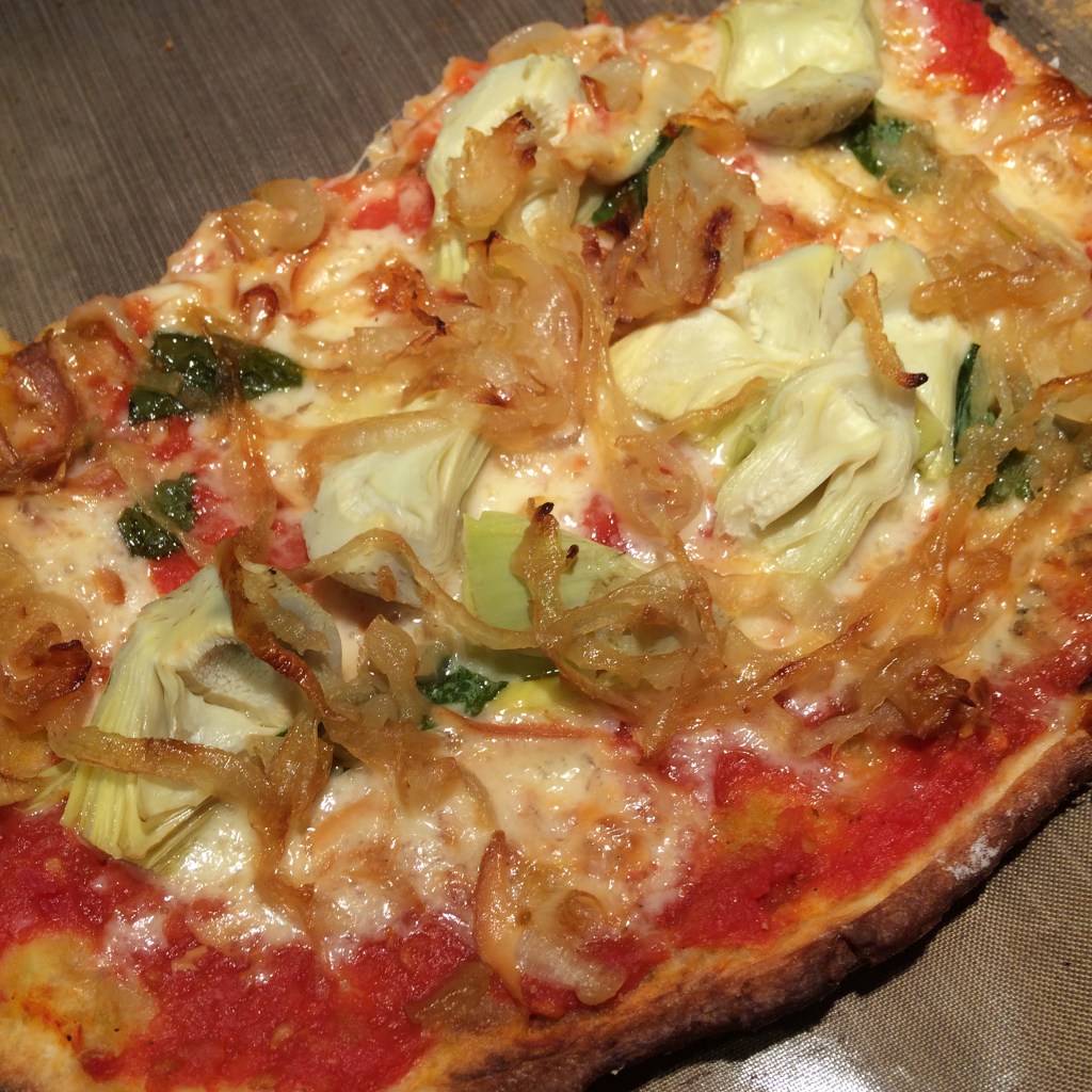 My own frying pan was crowded with cinnamon-raisin English muffins last Sunday, filling my flat with a magical scent. Caramelized onion and artichoke heart pizza with a magic-dough crust made for several savoury meals.